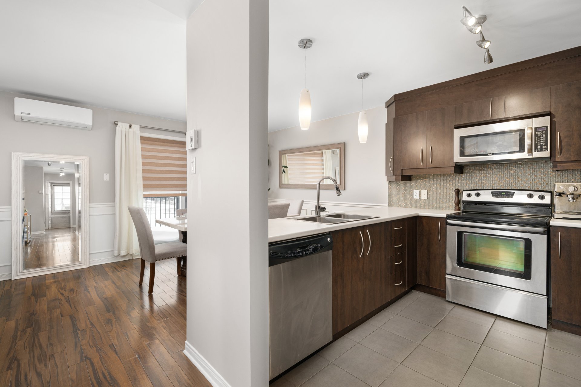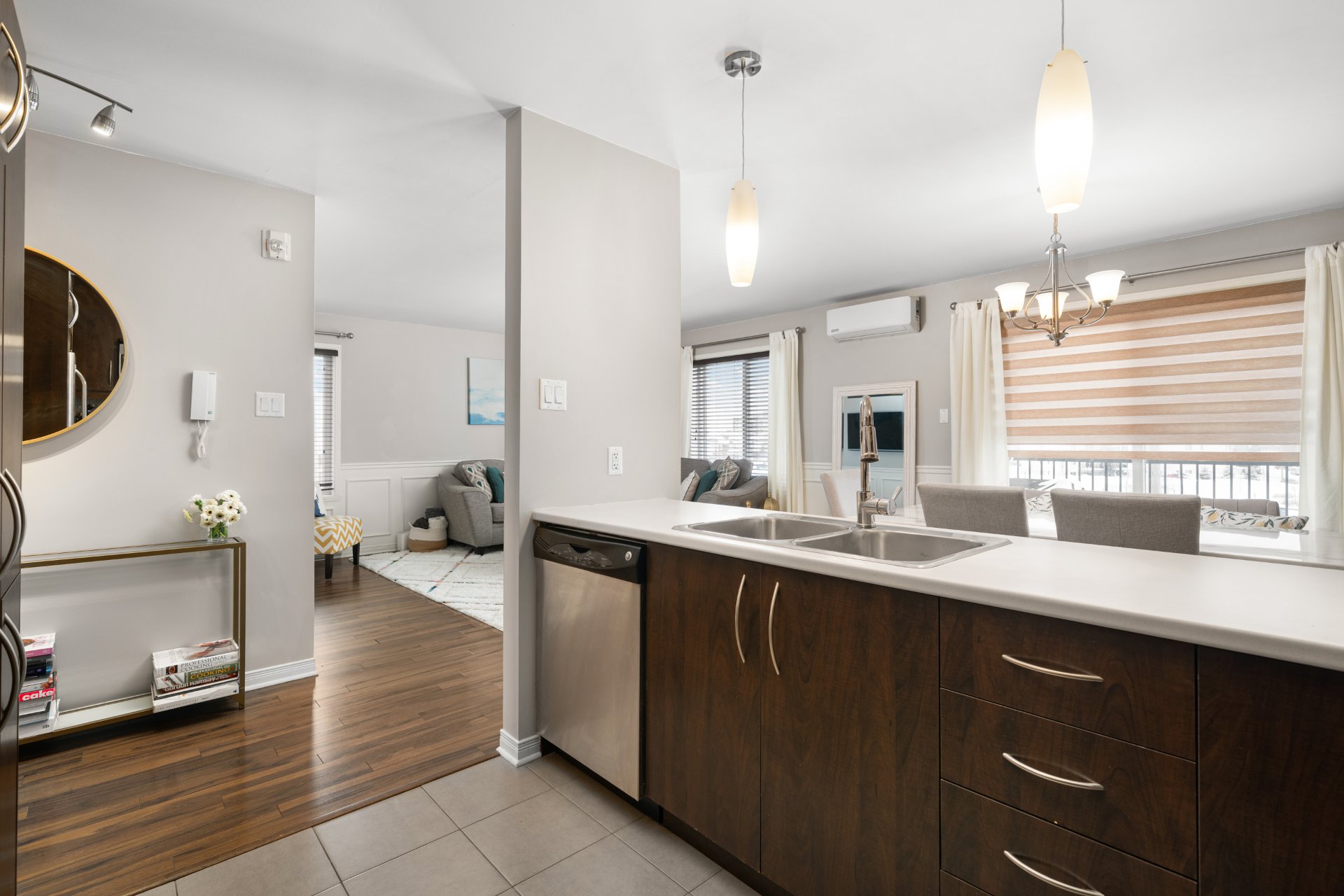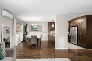 Amazing location in the heart of Vaudreuil East! This spacious 2-bedroom corner unit condo offers bright open-concept living and exceptional accessibility to all local amenities. Built in 2010, the unit features a functional layout with generous room sizes, a large bathroom with separate tub and shower, and a primary bedroom with walk-in closet. Enjoy the privacy of no rear neighbours, backing onto a park. Includes 2 outdoor parking spaces and a storage locker. Well-managed building with low condo fees. Steps to the commuter train, highways, schools, parks, shopping and restaurants. An ideal property for professionals, families or downsizers